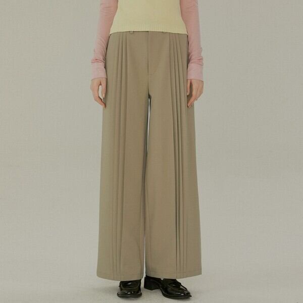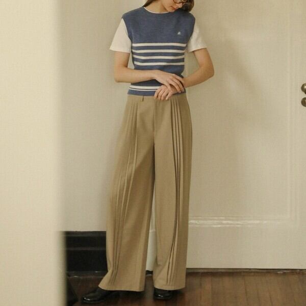 フロントに施されたプリーツが立体感を演出するお洒落なロングパンツ。