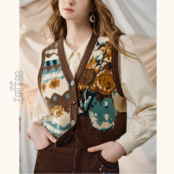左右で異なる表情を見せる、まるで1枚の絵画のようなニットベスト。