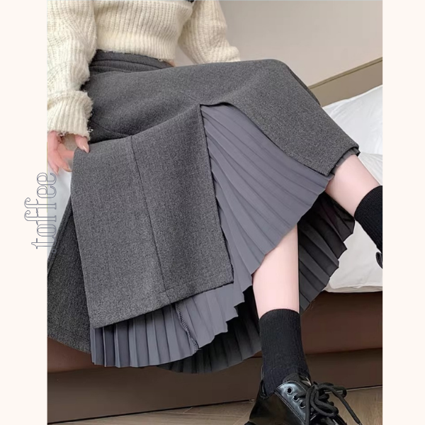 プリーツ重ねのミモレ丈ペンシルスカート《Z01338》