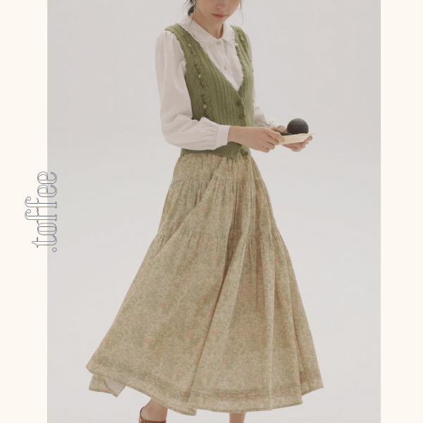 くすんだグリーンに繊細なボタニカル柄をのせた、どこか神秘的なミスティーフォレストデザインのロングスカート。やわらかく広がるAラインが上品なシルエットをつくり、ハイウエスト仕様でスタイルを美しく見せてくれます。サイドには便利なポケットをさりげなく配置し、日常使いしやすいのも魅力。レトロな趣と都会的な空気を両方纏える一枚で、シンプルなトップスに合わせても物語のある装いを楽しめます。