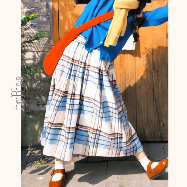 白地にブルーとレッドのチェックを重ねた、どこか懐かしいレトロムード漂うロングプリーツスカート。歩くたびにふわりと揺れる軽やかさが、甘いテイストをほんのり上品に引き立てます。シンプルなトップスに合わせるだけで、程よい個性と抜け感が生まれ、日常のコーデが優しく華やぐ一枚。ベーシックなスタイルが好きだけど、ちょっとだけ“自分らしさ”を加えたい方にぴったり。大人の可愛さとレトロの心地よさをそっとまとえる、当ショップらしいアイテムです。