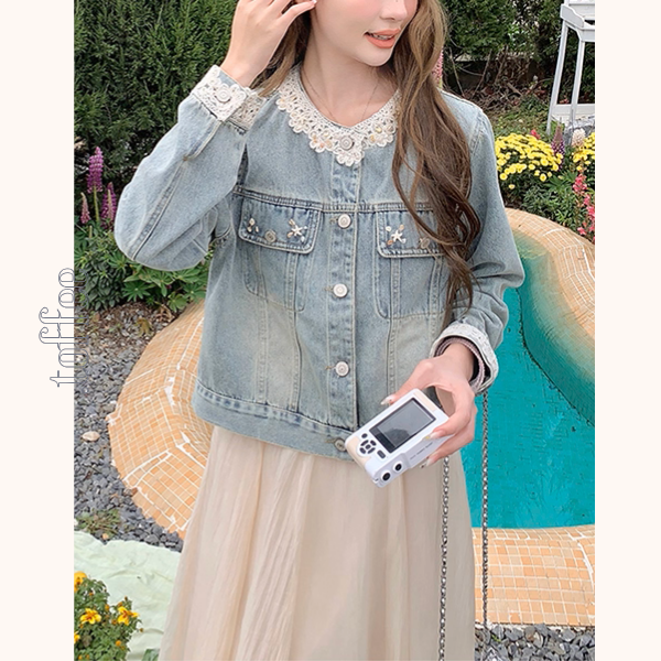 花咲く朝のレース付きデニムジャケット《Z01153》