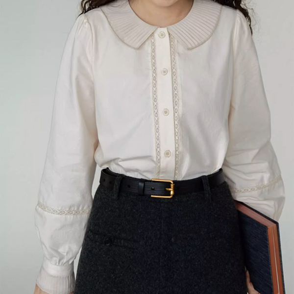穏やかな午後の陽に、そっと光を返すピンタック襟。