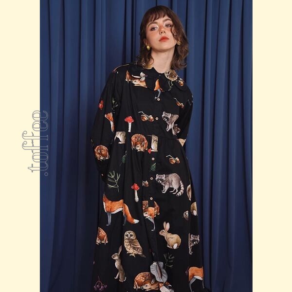 まるで図鑑から飛び出してきたかのような動植物たちが、レトロなテイストで描かれているユニークな一着。