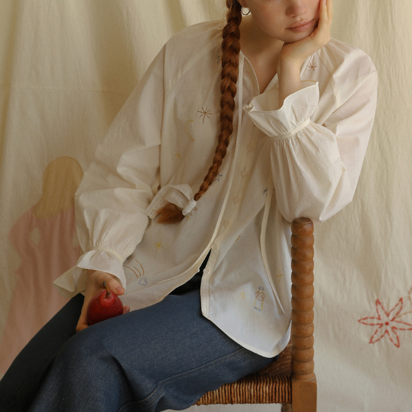 ポニーと星のロマンティック刺繍入りホワイトブラウス《Z00829》