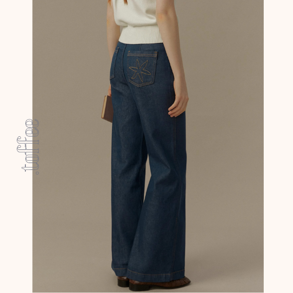 スタイルを引き立てる魅力的なスターフラワー刺繍ブーツカットデニム。