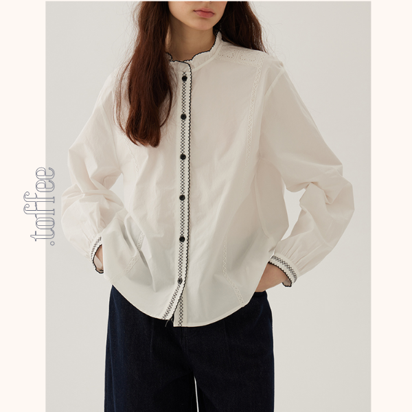 コントラストカラーレースディテールシアーブラウス《Z00844》