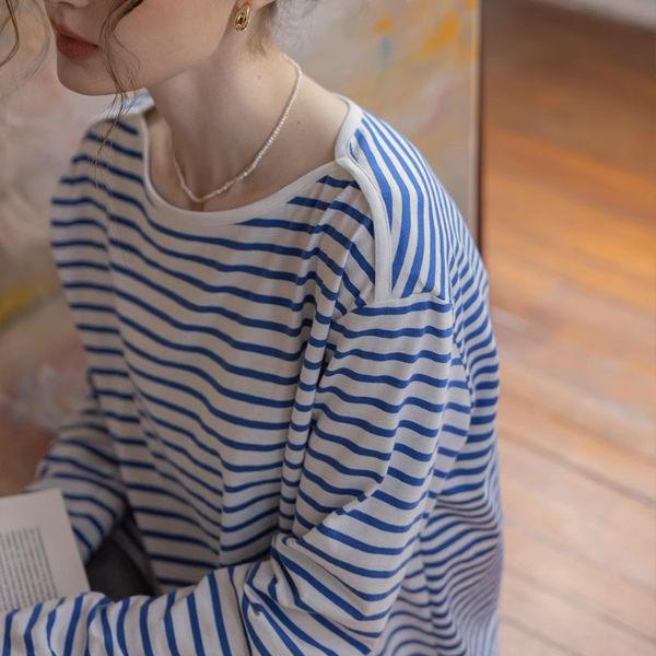 シンプルながらも洗練されたボートネックデザインは、着こなしに上品さをプラスします。