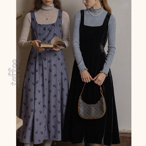 【2color】スクエアネックノースリーブロングワンピース《Z00853》