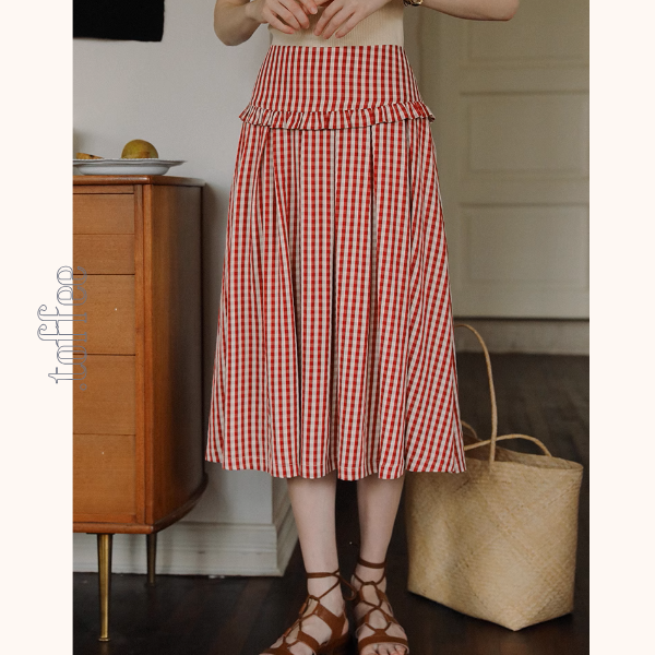 レッドとオフホワイトの組み合わせが上品で可愛らしい、ギンガムチェックのハイウエストフレアスカート。ハイウエストデザインでスタイルアップ効果も期待でき、フレアシルエットが歩くたびに女性らしい動きを演出します。様々なトップスと合わせやすく、着回し力も抜群です。