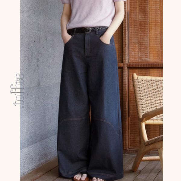 モダンな雰囲気を醸し出す、ウエーブラインワイドデニムパンツ。ハイウエストデザインが脚長効果を演出し、トレンド感溢れるスタイルを実現します。ネイビーの深い色合いは、カジュアルなトップスにも合わせやすく、普段使いはもちろん、特別な日のお出かけにもピッタリです♡
