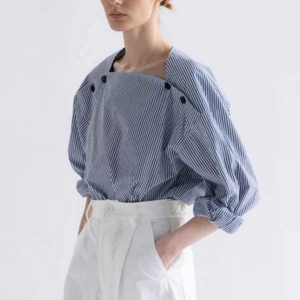 スクエアネックストライプドロップショルダーシャツ《Z00906》