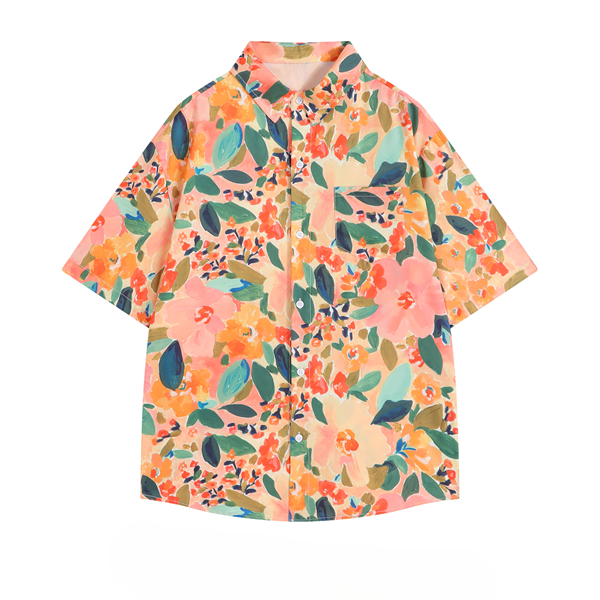 鮮やかなマルチカラーの花柄が目を惹く、一枚でコーディネートの主役になるシャツ。