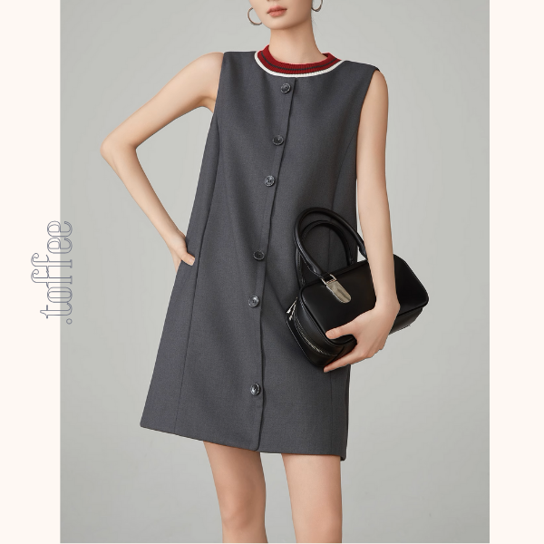 上品さとカジュアルさを兼ね備えたフロントボタンのノースリーブワンピース。すっきりとしたシルエットとフロントボタンのデザインが、着るだけでスタイルアップ効果を発揮します。一枚で着ても、ジャケットやカーディガンを羽織ってもサマになる、着こなしの幅が広いアイテムです。