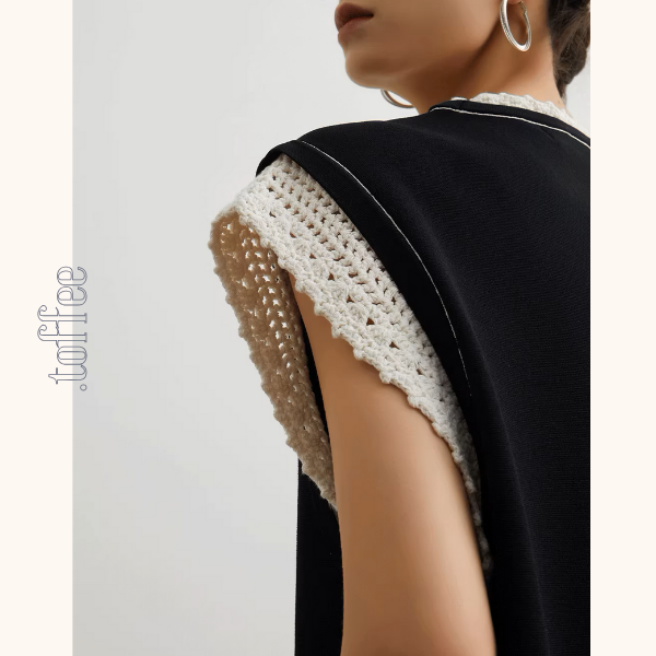 シンプルなクルーネックデザインに、レースのディテールがアクセントになっています。