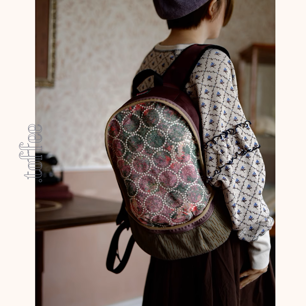 花柄と幾何学模様が織りなす、洗練されたデザインのバックパック。落ち着いた色合いで、大人可愛いスタイルを演出します。普段使いはもちろん、旅行などにもおすすめです。
