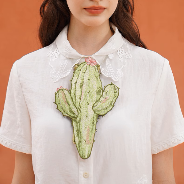 一輪のサボテンが、胸元で静かに語る物語。