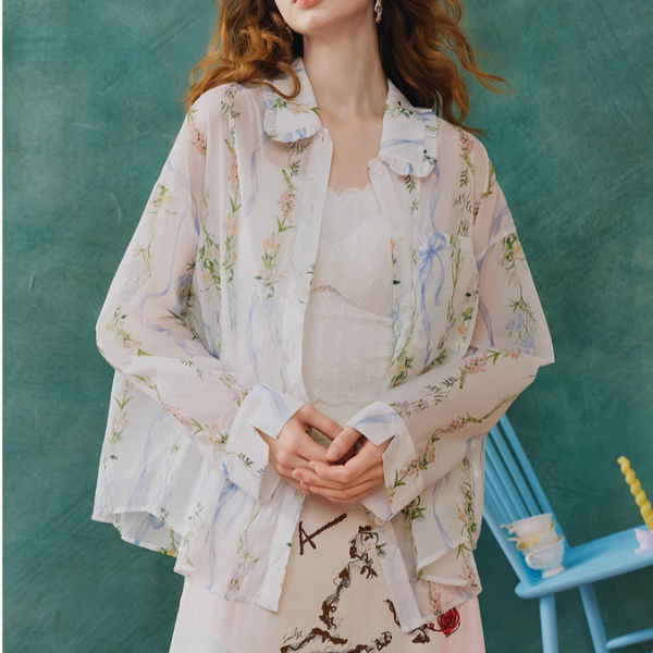 フローラルプリントが映える、上品なシアーシャツが登場しました。柔らかな白地に、華やかなお花のプリントが施されており、透明感のある素材が軽やかな印象を与えます。デザインはシンプルながらも、花柄がアクセントとなり、装いに華やかさをプラス。夏の暑さにもぴったりで、リラックスしたカジュアルスタイルや、スカートと合わせたフェミニンスタイルに最適です。