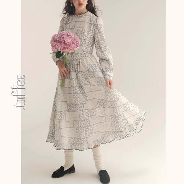 パッチワーク小花柄ロングワンピース《Z00986》