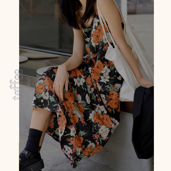 色鮮やかなキキョウの花が大胆にプリントされたフローラルプリントロングキャミワンピース。シンプルなデザインながら引き立つ華やかな一枚です。軽やかな素材が軽快に揺れ、女性らしいシルエットを演出。