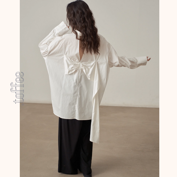 【2color】バックリボンオーバーサイズシャツ《Z00999》