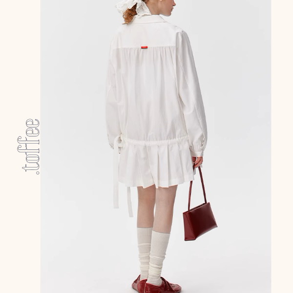 女性らしさを引き立てるリボン付きのドローストリングデザインが可愛いシャツワンピース。ワイトの清楚な色合いが、どんなシーンでも柔らかく優雅な印象を与えてくれます。シンプルなデザインながら、しっかりとしたシルエットが体型を美しく見せ、カジュアルなデイリースタイルから特別な日のコーディネートまで幅広く対応可能です。デートやお出かけにぴったりな一着です♡