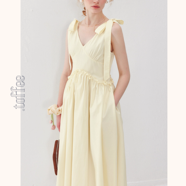 【2color】ショルダーリボンVネックワンピース《Z01011》
