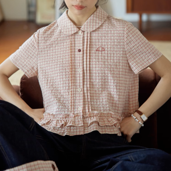 ラッフルヘムクロップドチェックシャツ《Z01021》