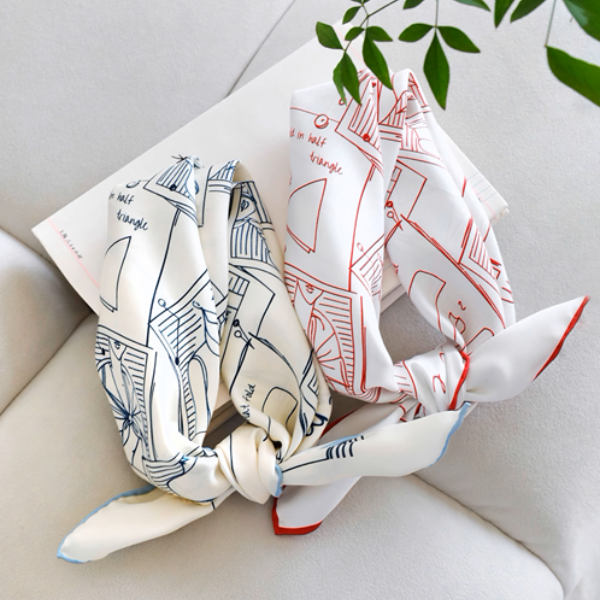 優雅な風合いが魅力の、マルベリーシルクフレンチライクスカーフ。上質なマルベリーシルク素材を使用し、滑らかな手触りが特長です。ファッションテイストのデザインは、シンプルなコーディネートに華やかさをプラス。頭や首元に巻いたり、バッグに結んだりと、多彩なスタイリングを楽しんでくださいね♡