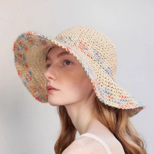 夏のコーディネートに華やかさをプラスする色鮮やかなつば広麦わら帽子。ビーチやピクニックなど、アウトドアシーンにぴったり。周囲の視線を集めるおしゃれアイテム♡