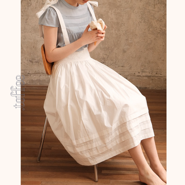 花刺繍ホワイトサスペンダースカート《Z01053》