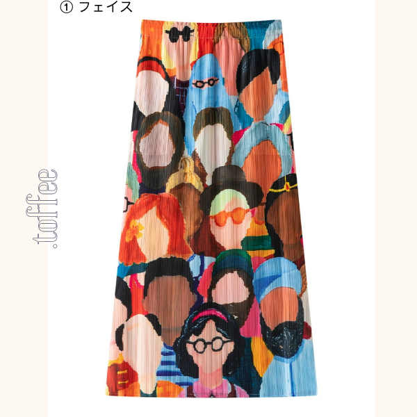 レトロなアートピースのような、カラフルで遊び心たっぷりのプリーツスカート。落ち着いたトーンに鮮やかなマルチカラーが映える、女性にこそ着ていただきたい一枚です。裾に向かってゆるやかに広がるシルエットが美しく、体型カバーも◎ベーシックなTシャツやシャツと合わせるだけで、コーデに個性と華やかさをプラスできます。いつものスタイルにちょっとした“自分らしさ”を。
