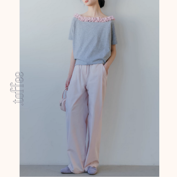 毎日履きたくなる心地よさ。ほんのりピンクが優しい印象のワイドパンツは、くしゅっとしたウエストゴムがさりげないアクセントに。リラックス感たっぷりのシルエットながら、足元にかけてのすっきり感で大人の女性にもぴったり。Tシャツやブラウスとも好相性で、オフィスカジュアルにも週末コーデにも活躍します。