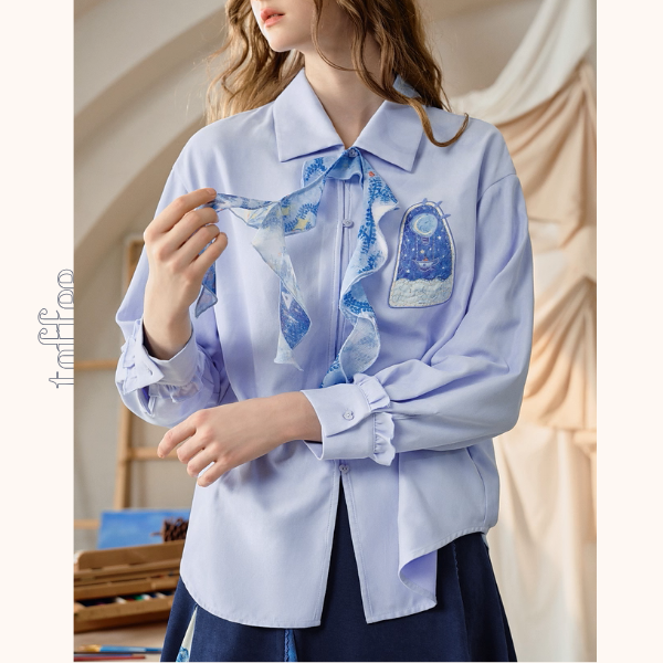 【2color】物語を結ぶリボンとアップリケのシャツ《Z01126》