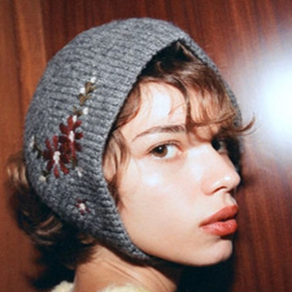三角シルエットで頭をやさしく包み込む、上品さ漂うフィットタイプのニット帽。ダークブラウンとグレーの落ち着いた2色に、深みのあるレッドのフラワー刺繍を添えて、甘さとクラシカルな雰囲気を両立した一品です。巻くように被れる独特の形が横顔をすっきりと見せ、普段のコーデにさりげない個性をプラス。カジュアルにもレトロスタイルにも馴染む、冬のおしゃれを優しく彩るアクセサリーです。