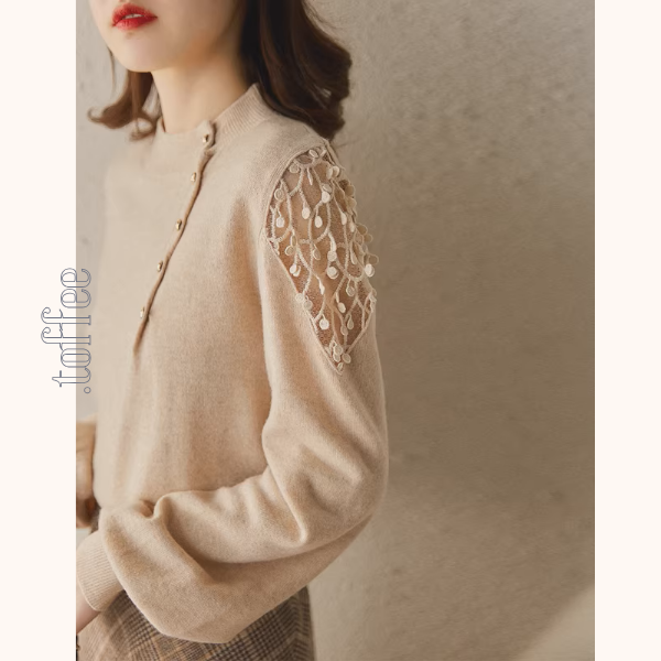 【3color】肩メッシュが映える*アシメボタンの上品ニット《Z01199》