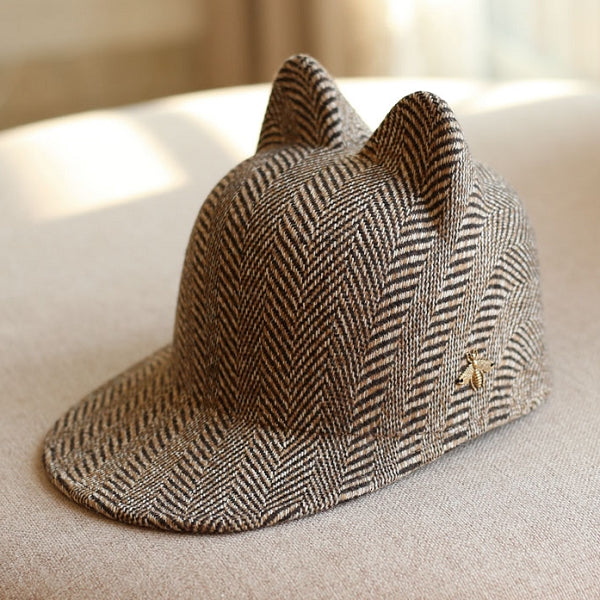 あれ?お耳?ヘリンボーン柄の丁寧なキャップ tb100