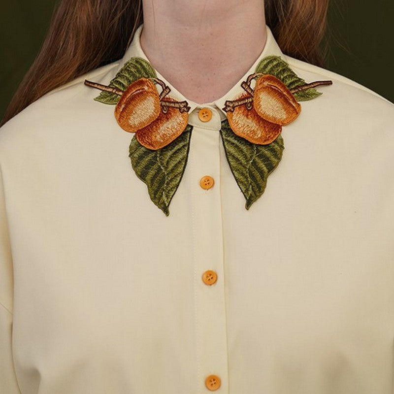 桃の繊細な刺繍の襟がモードでかわいらしいブラウスです