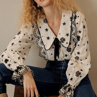 レース使いやキャンディースリーブがガーリーな印象を与えてくれる長袖ブラウス