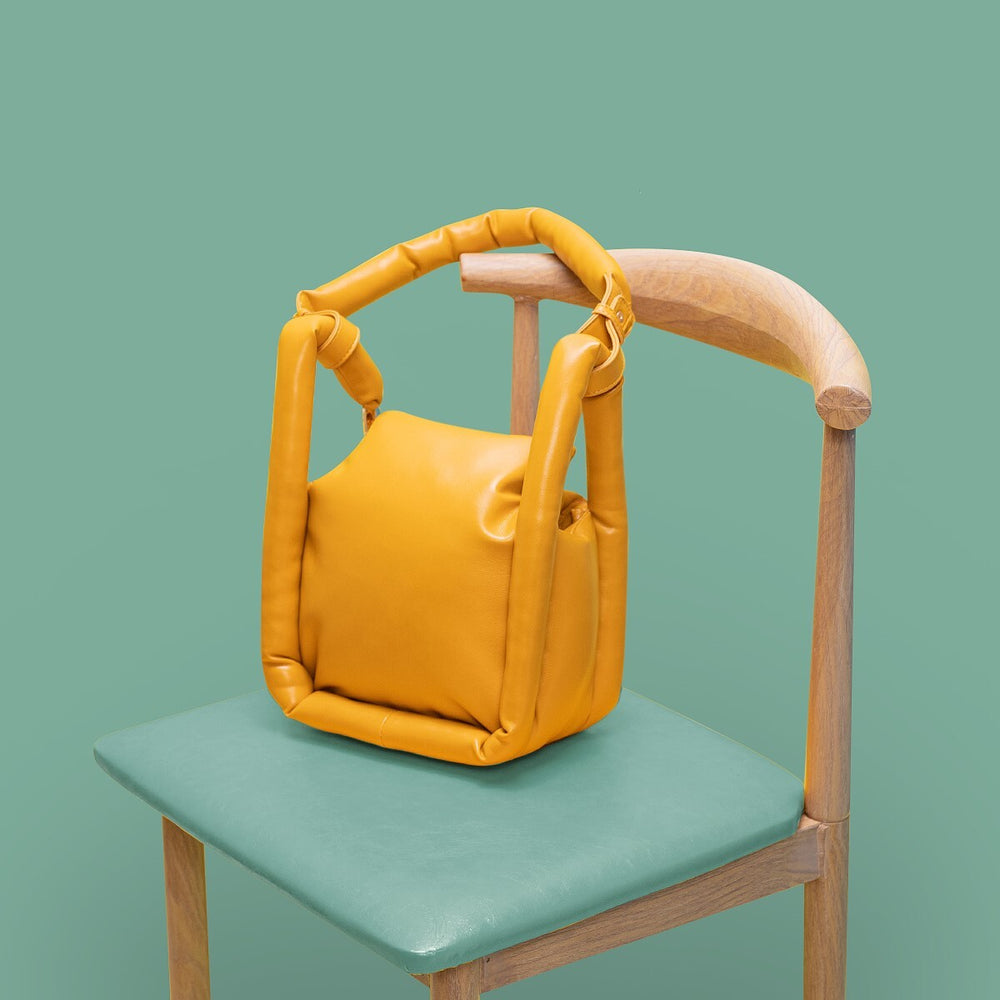 四角なのに丸みを帯びている個性的でスタイリッシュなバッグ