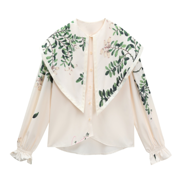 ビッグラペルヴィンテージ風プリントシャツ AU-043