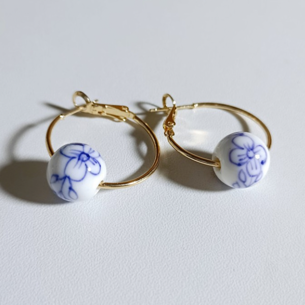 ブルーのイラストとホワイトビーズが爽やかな印象のシンプルピアスです。