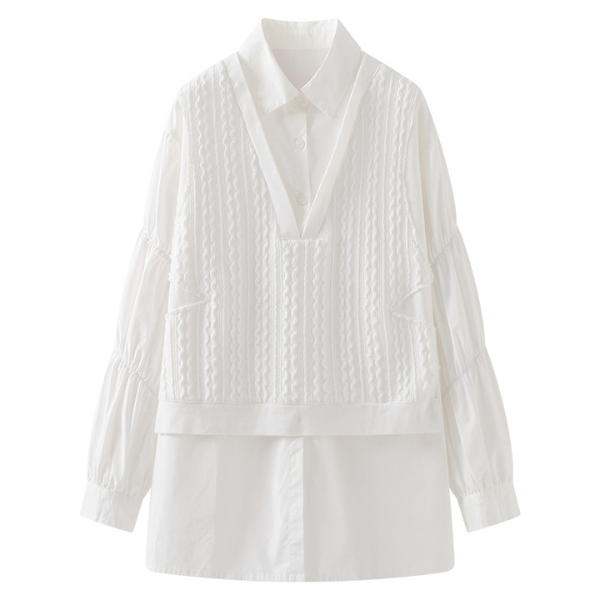 【2color】フェイクツーピースレイヤード調シャツ AU-201