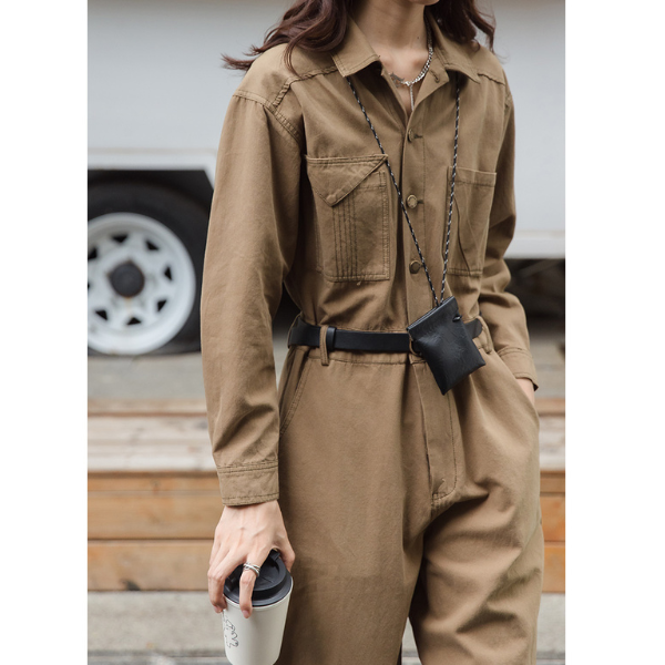 【2color】ウエストベルトメンズライクジャンプスーツ AU-224
