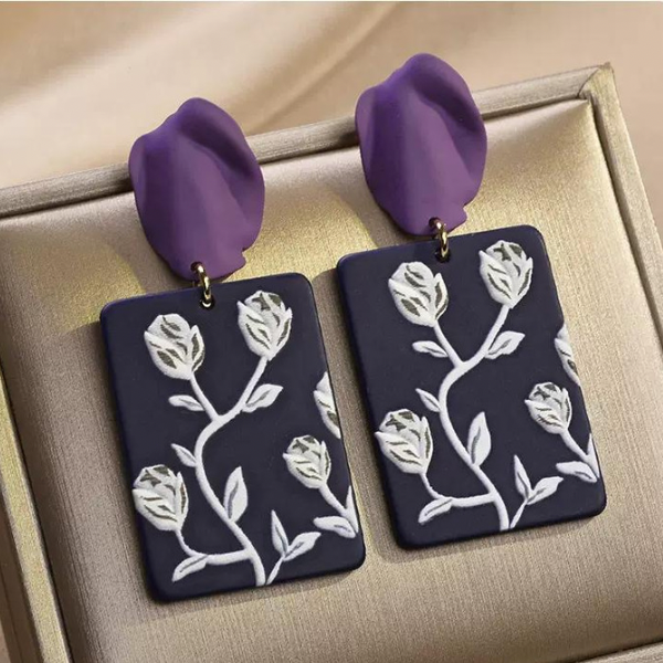 【2color】フラワーパターンプレートピアス AU-276