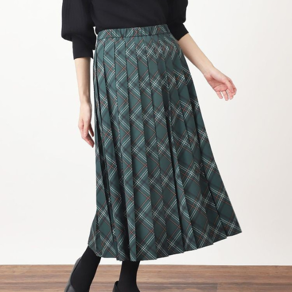 歩くたびに揺れるプリーツが上品な印象のチェックスカート。