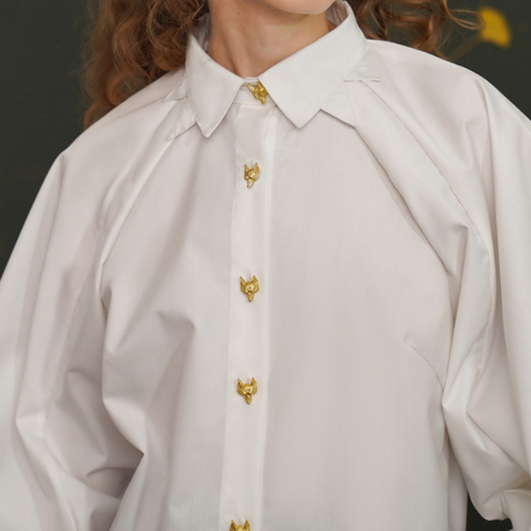 ボタンのフォックスデザインが鮮やかな立体感なシャツです。
