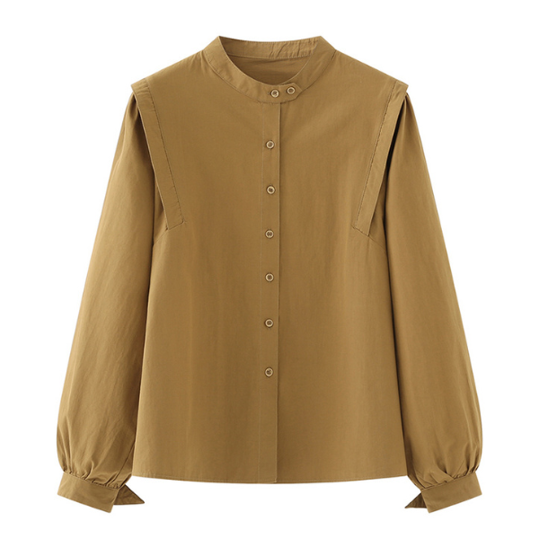 オーバーショルダーで作られたデザインが目を引くとっておきなシャツ。