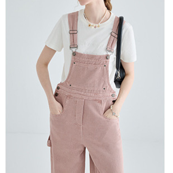 ピンクの女性らしさ溢れるカジュアルながらもかわいいオーバーオール。