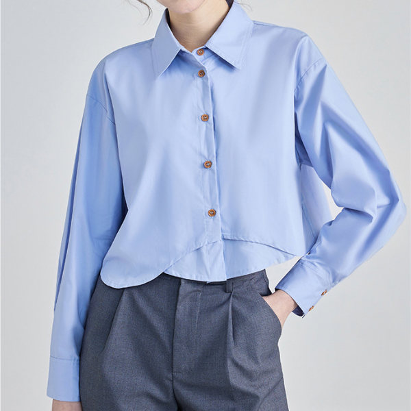 爽やかなブルーがコーデを華やかにしてくれるシャツ。